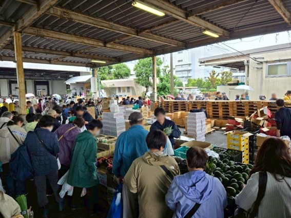 葛西市場の市場まつりで一番の賑わいを見せていた野菜や果物、花きの即売会では、売り場をぐるっと囲うほどの行列が出来ており、どんどん品物が捌かれていく様は圧巻でした!
