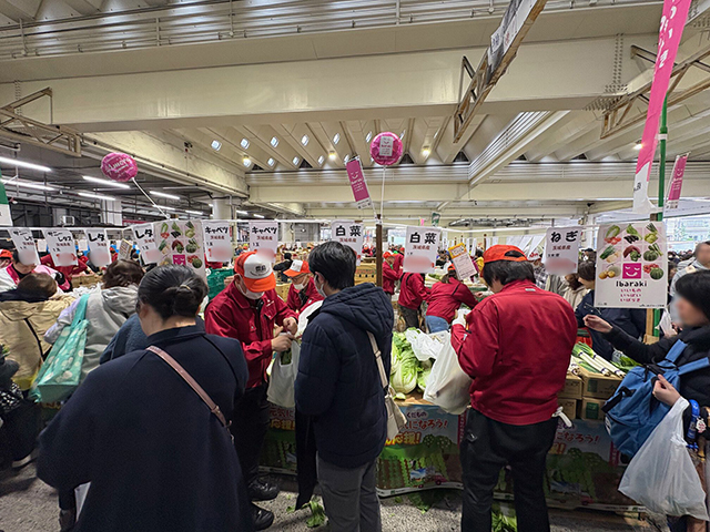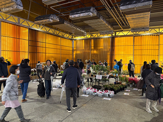 こちらは市場まつり限定の販売コーナー。旬の青果だけでなく、花きや日用品、衣類や靴など地域密着型の市場ならではの商品の販売も行われており、多くの来場者が並んで購入するなど非常に活気がありました。