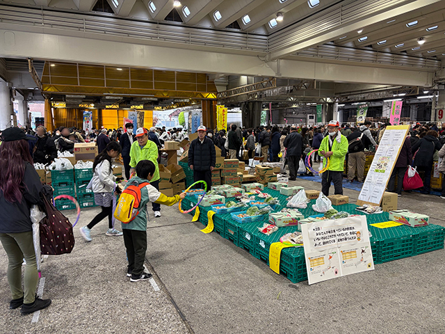 楽しみながら、市場ならではの野菜等が必ず獲得できる体験に多くのお子様が楽しんでいる様子でした。
