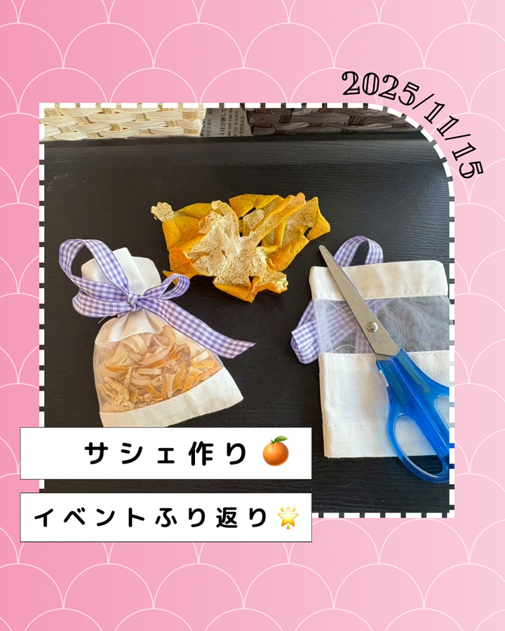 11月15日(土)は、豊洲 千客万来のお祭り広場にて「みかんの皮でサシェを作ろう!」を開催しました。