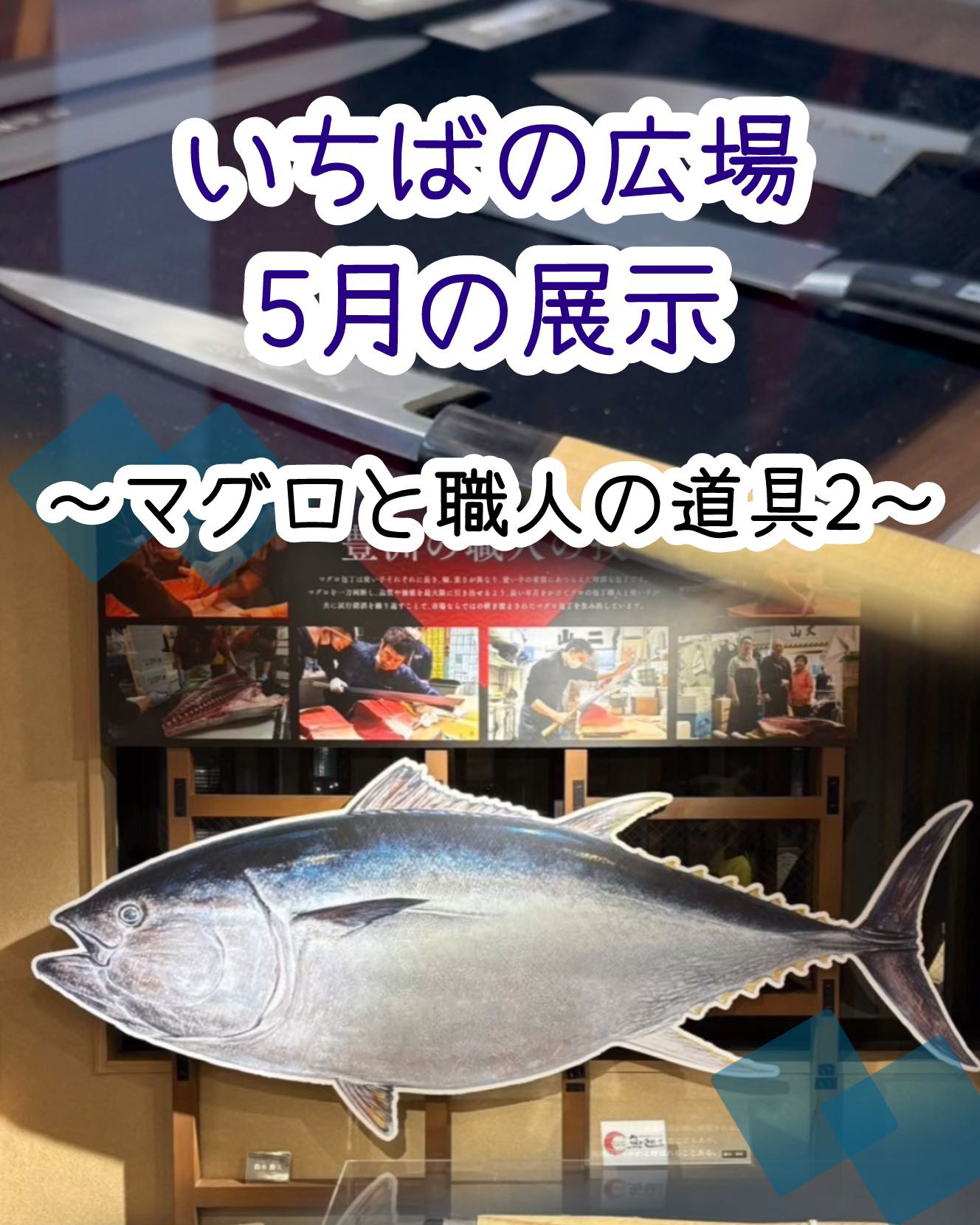 5月の「いちばの広場」では全長2メートルにもなるクロマグロの実物大パネルを展示しました。