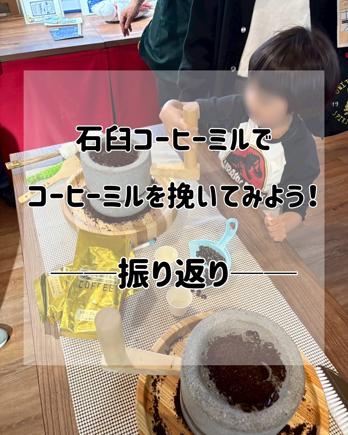 開店前から行列ができるほど多くの方が参加され、石臼を回しながら香ばしい香りを楽しむひとときに、皆さん夢中の様子でした。体験後には、石臼で挽いた豆を使ったコーヒーの試飲もあり、「酸味が少なくて飲みやすい」「家でもやってみたい」といった声が寄せられました。
