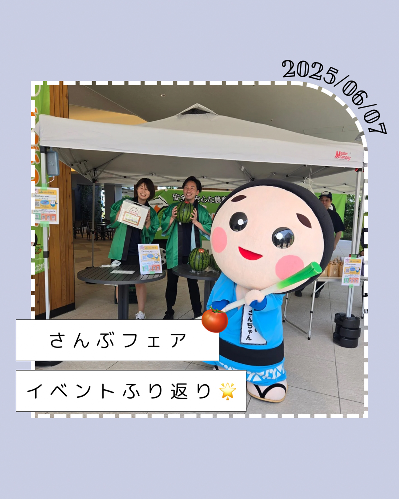 6月5日(土)は、東京シティ青果さんによる「さんぶフェア」を開催しました。千葉県山武郡市の農産物であるレタスやトマトなどの夏野菜詰め合わせセットの販売のほか、購入者を対象とした抽選会も実施しました。