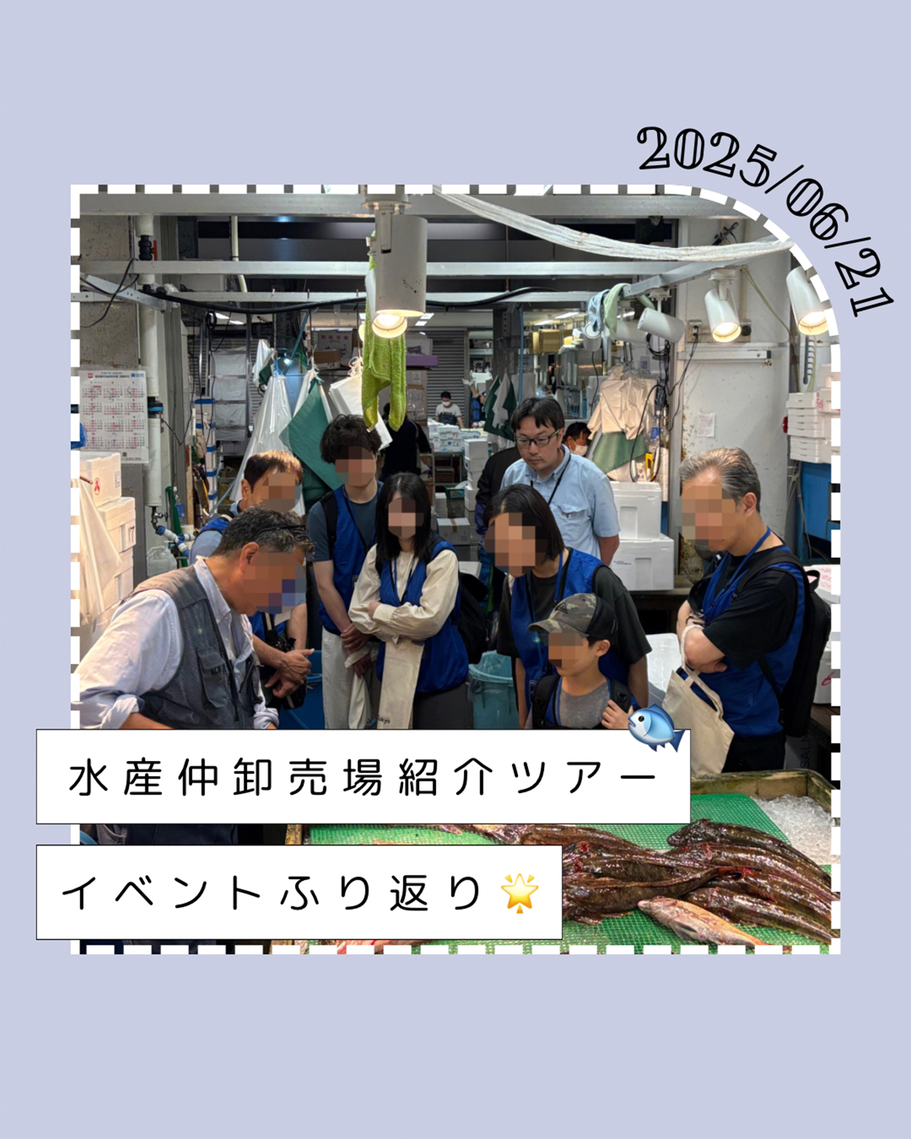 6月19日(土)は、東京魚市場卸協同組合さんの協力のもと、「豊洲市場 水産仲卸売場紹介ツアー」を開催し、一般の方は普段は入れない水産仲卸売場の臨場感を、体感いただきました。